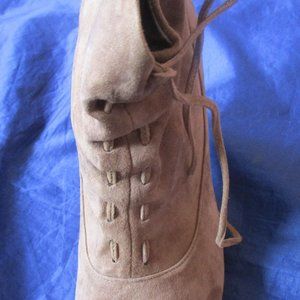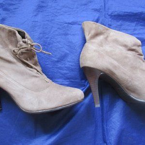 CALVIN KLEIN BROWN SUEDE HIGH HEEL ANKLE BOOT-NEAR MINT-SIZE 8 M-STILETTO HEEL
