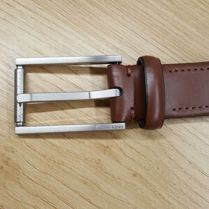 CALVIN KLEIN Belt Mens Size 42 Brown Cognac Genuine Leather Silver Logo Buckle
