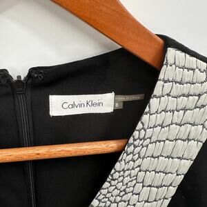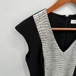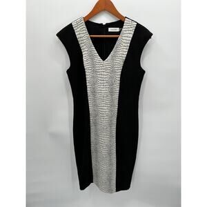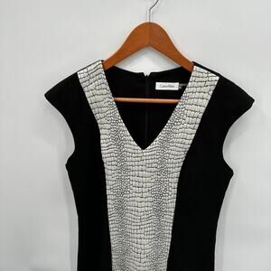 CALVIN KLEIN Black Cap Sleeve Animal Print Black Sheath Dress // 8