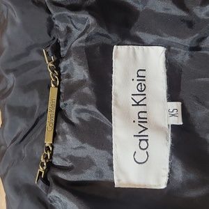 CALVIN KLEIN Black Full Zip Puffer Nylon Coat w/ Toggle Waist & Adjustable Cuffs