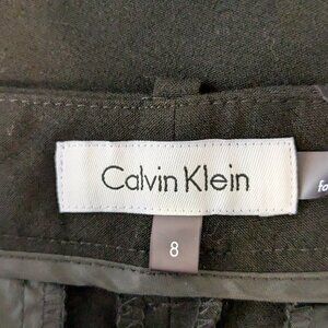 CALVIN KLEIN Black Stretch Mid-Rise Front Zip Straight Leg Career Pants; Size 8