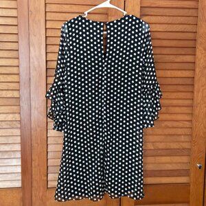 CALVIN KLEIN Black & White Polka-Dot Chiffon Bell-Sleeve Trapeze Shift Dress 2