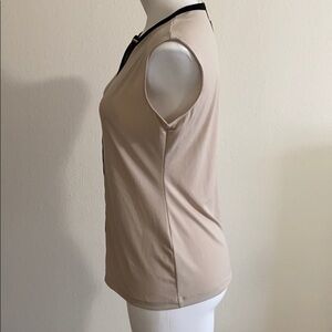 Stretchy orange, pull over top with a cute gold detail by the neck