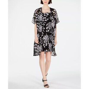 CALVIN KLEIN Black/White Floral Chiffon Cover-up Kimono NWT 4
