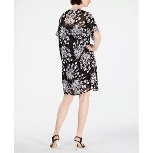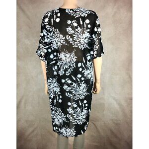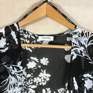 CALVIN KLEIN Black/White Floral Semi Sheer Chiffon Cover-up Top Kimono Top