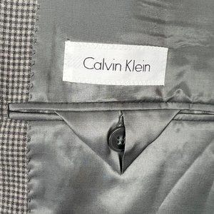 CALVIN KLEIN Blazer Jacket Sports Coat Men 38R Gray Check 100% Wool Professional