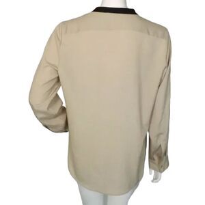 CALVIN KLEIN Blouse, L, Champagne/Black, Long Tab Sleeves, Zipper Neck