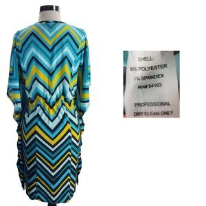 CALVIN KLEIN Blue Yellow Chevron Tie Waist Dress Cover Up. G24