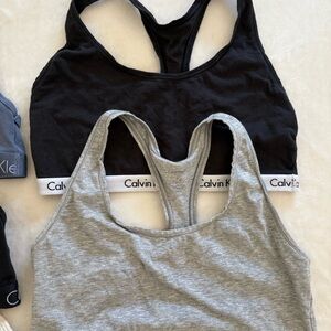 Discover the perfect blend of comfort and style with Calvin Klein's Intimates & Sleepwear collection. These black and gray bras feature a racerback design and an elastic band under the bust, offering medium support for everyday wear.