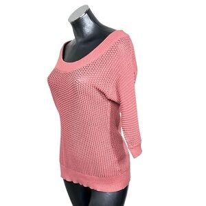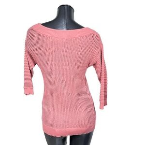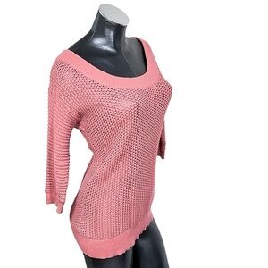 CALVIN KLEIN Brick Orange 3/4 Sleeves Open Knit Scoop Neck Sweater Top Women's S