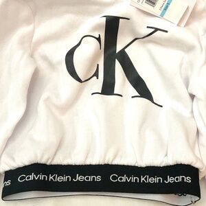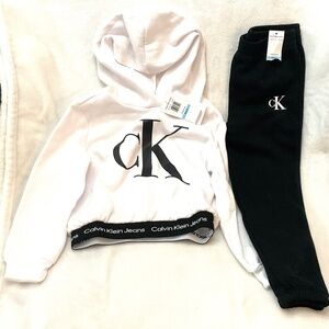 BLACK AND WHITE CALVIN KLEIN CHILD’S TWO PIECE LOGO HOODIE & FLEECE JOGGERS SET Size 5