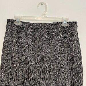 - black and gray ish geo geometric print printed front / solid black back colorblock color block straight / pencil skirt