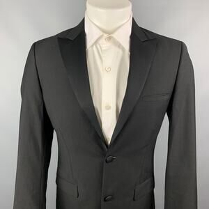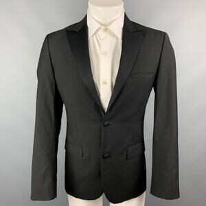 CALVIN KLEIN COLLECTION Size 36 Black Wool Peak Lapel Tuxedo Sport Coat