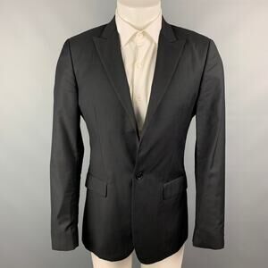 CALVIN KLEIN COLLECTION Size 38 Black Wool / Silk Peak Lapel Sport Coat