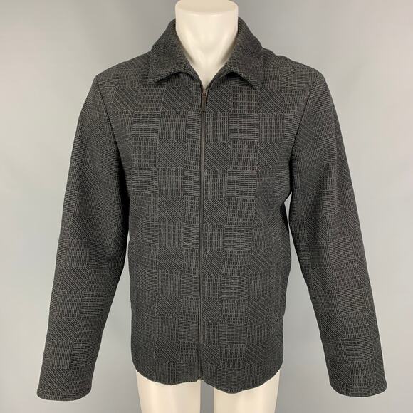 CALVIN KLEIN COLLECTION jacket comes in a charcoal & black textured wool / cashmere with a full liner featuring a spread collar, slit pockets, and a full zip up closure. Made in Italy.
