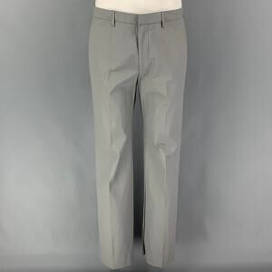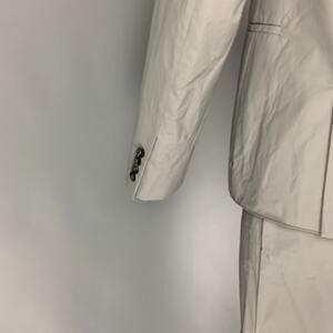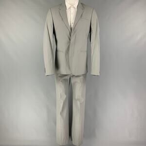 CALVIN KLEIN COLLECTION suit comes in a grey polyurethane / polyester with a full liner and includes a single breasted, double button sport coat with a notch lapel and matching flat front trousers. Made in Italy.