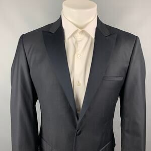 CALVIN KLEIN COLLECTION Size 40 Navy Wool Tuxedo Sport Coat