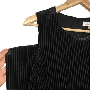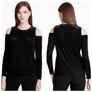 CALVIN KLEIN CORDUROY COLD SHOULDER LONG SLEEVE PULLOVER TOP SMALL NWT BLACK