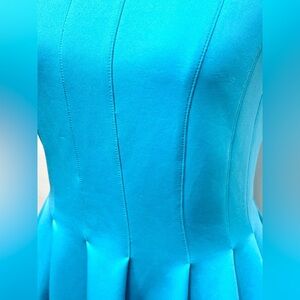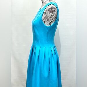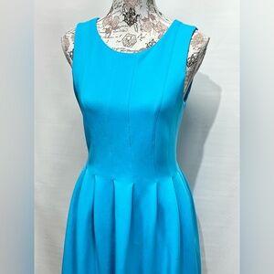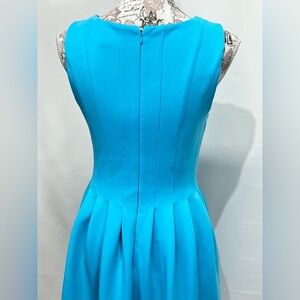 Capri blue scuba fit and flare dress from CALVIN KLEIN, size 6. Dress is sleeveless, scoop neckline and pleated skirt.