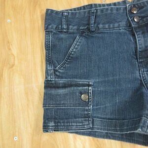 CALVIN KLEIN Cargo Utility Jean Shortie Shorts Sz 12/31 Dark Wash Stretch Denim