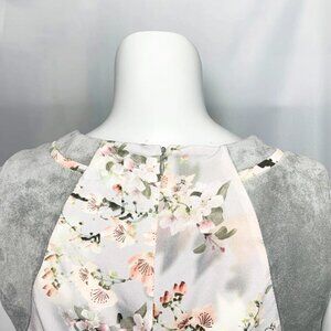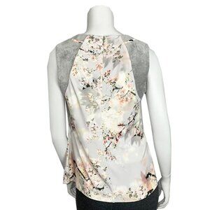 CALVIN KLEIN Cherry Blossom Print Top With Faux Suede Shoulders