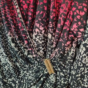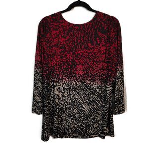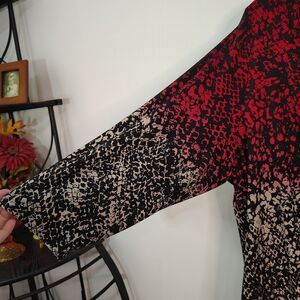Calvin Klein 1X Red Black & White Ombre Print Cross Front Stretchy Dressy Blouse Plus Size Women's 3/4 Sleeve Career Professional Office Business Church Party Casual Shirt Top. Measurements - 25" armpit to armpit, 50" chest, 30" shoulder to front hem length. Compare to over $90 new!