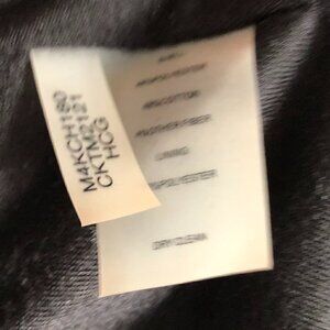 Gold zipper accents. Two faux top pockets and two function bottom pockets. Zippered sleeves. Adjustable buckles at waist.