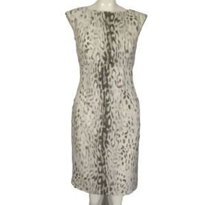 CALVIN KLEIN Dress, 2, Snow Leopard Print, Sleeveless, Empire waist, Sheath