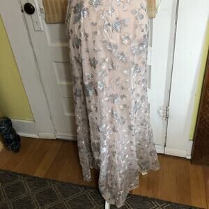 CALVIN KLEIN Embroidered Gown Blush Pink Sz 4 Floor Length Dress Cap Sleeve Prom