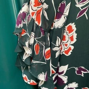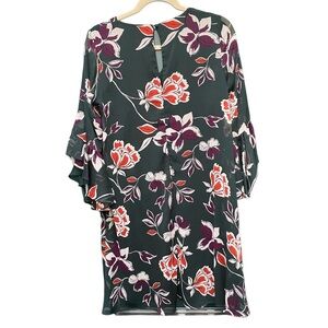 Pre owned like new. Dark green dress with floral print. Flowy bell sleeves. Super cute. WOMENS size 6.