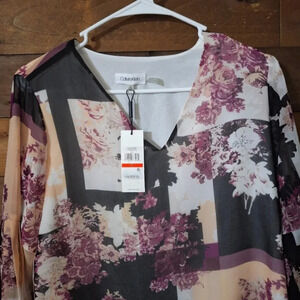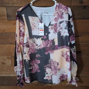 CALVIN KLEIN Floral Colorblock Oversized Blouse SZ XS