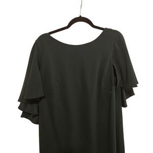 CALVIN KLEIN Black Flutter Cape Short Sleeve V-Back Crepe Sheath Dress - Size 18W