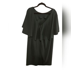 CALVIN KLEIN Flutter Cape Short Sleeve V-Back Crepe Sheath Dress - Size 18W