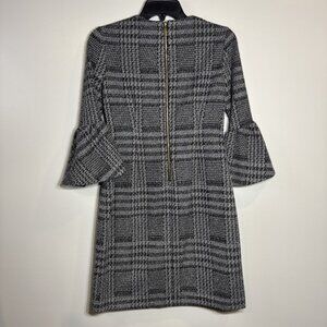 CALVIN KLEIN Gray 3/4 Bell Sleeve Houndstooth Dress Knee Length Women Size 2