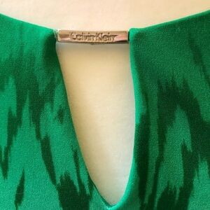CALVIN KLEIN Green Black Bateau Neck Silky 3/4 sleeve top Women’s size small