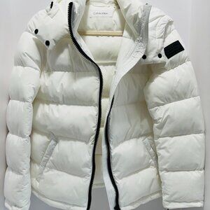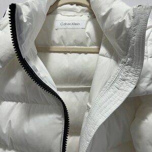CALVIN KLEIN Hooded Puffer Coat/Jacket; Color: White; Size: Medium (M)