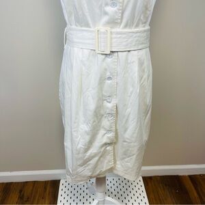 CALVIN KLEIN Ivory White Button Down Sleeveless Belted Dress - Size 10