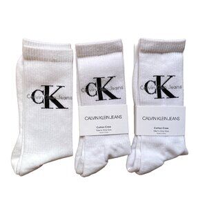 CALVIN KLEIN JEANS WHITE COTTON BLEND CREW SOCKS MENS ONE SIZE FITS ALL