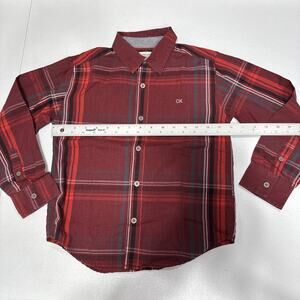 CALVIN KLEIN Jeans Boys Plaid Button up Shirt Long Sleeve Small 8 Red Gray