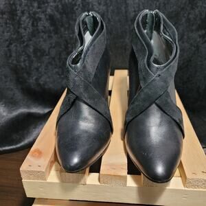 CALVIN KLEIN Juanita Black criss cross Leather Stiletto Ankle Booties—SZ. 7.5