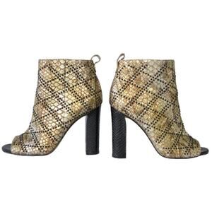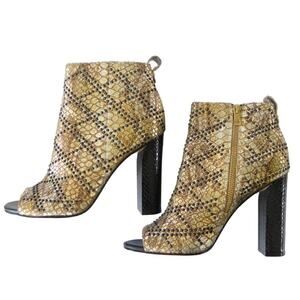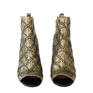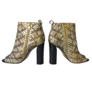 CALVIN KLEIN Jules Studded Peep Toe Heeled Bootie Gold Snake Print Leather