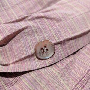 Fine multi-stripes of muted tones of geranium and burgundy from the Khaki Collection