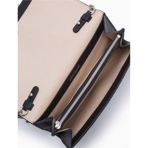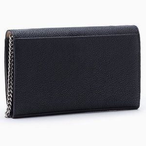Designed with subtly textured leather, this crossbody bag features a chainlink strap, a top flap closure adorned with a logo plaque, an interior center zip pocket and 2 open pockets.