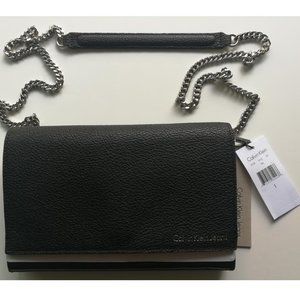 CALVIN KLEIN LEATHER LARGE ACCORDIAN CROSSBODY BAG