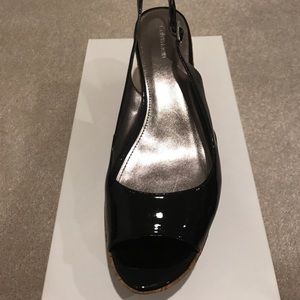 CALVIN KLEIN LIKE NEW Black patent cork wedge