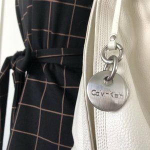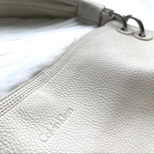 CALVIN KLEIN Cream Leather Shoulder Purse Bag