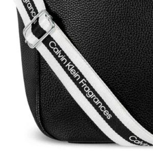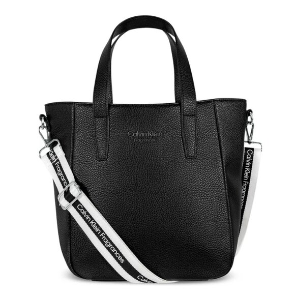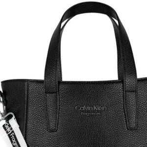 CALVIN KLEIN Leather Tote in Black w. White Logo Strap