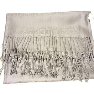 CALVIN KLEIN Letters SILVER GRAY Luxury Shoulder Wrap Shawl EXTRA LARGE