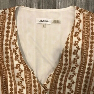 CALVIN KLEIN Light Brown Size S Embroidered Knee Length Dress Missing blet