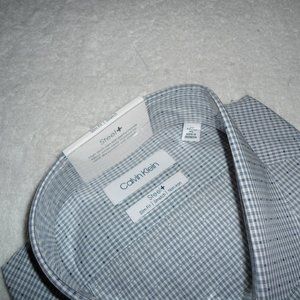 CALVIN KLEIN NEW MENS MEDIUM BLUE CHECKS SLIM FIT NON IRON STRETCH DRESS SHIRT VARIOUS SIZES MSRP $79.50 FEATURES A 96/4 COTTON/ELASTINE BLEND FOR COOL COMFORT AND STRETCH, PINPOINT SOLID CHECKS GIVES IT A FOCUSED APPEARANCE AND WILL GO WELL WITH SOLID DRESS TIES AND BOWTIES, BUTTON UP FRONT, SLIM FIT TAILORING IN THE CHEST AND BODY FOR A CLOSER FIT, NON-IRON, SPREAD COLLAR WITH STAYS, LONG SLEEVES, DUAL POSITION BARREL CUFFS AND SHIRT TAIL HEM. MOST HAVE TAGS, SOME DO NOT.